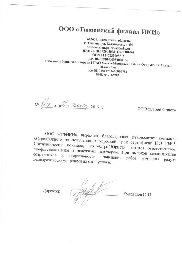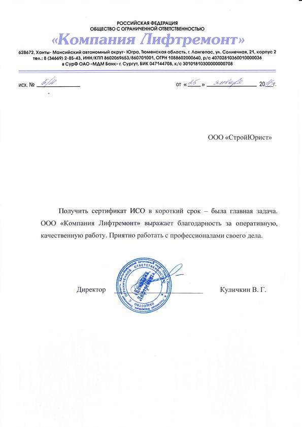Отзывы клиентов "СтройЮрист" по ISO в Ульяновске