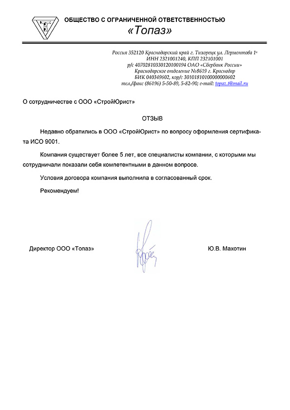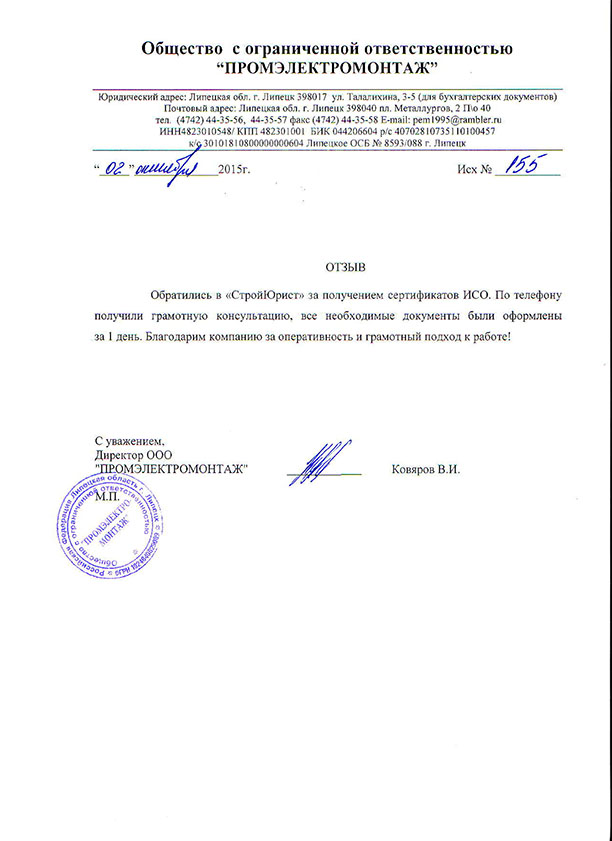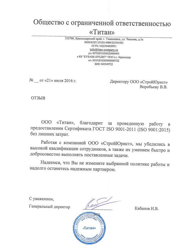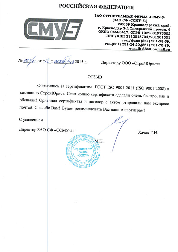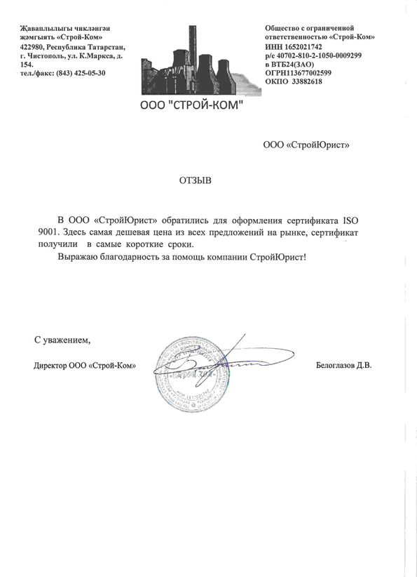 Отзывы клиентов "СтройЮрист" по ISO в Ульяновске